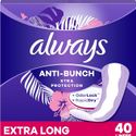 The Always Anti-Bunch Xtra Protection Extra Long Pads provide reliable daily protection with innovative anti-bunch technology. Designed to stay in place, these pads help prevent shifting, twisting, or bunching, ensuring all-day comfort. With an extra-long length, they deliver extended coverage for greater security and confidence. Each pack contains 40 pads, perfect for everyday freshness or as backup protection on light flow days.
