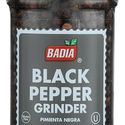 Badia Black Pepper Grinder contains premium whole black peppercorns packaged in a convenient grinder for freshly ground flavor every time. Known for its bold, zesty taste and aromatic punch, black pepper is an essential spice for enhancing meats, vegetables, salads, soups, and sauces.